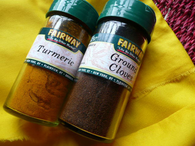 Inspired by my friend Cathy who wrote to me that she dyes with spices, I added  1 Tablespoon of ground cloves and 1 heaping Tablespoon of turmeric. Boiled for one hour- Voila!