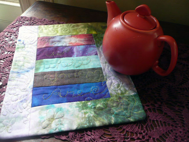 I am making these little quilts. They are so fun and cheerful. I love the way the weight of them and the way they feel. They look good hanging up on the wall and just laying around the house here and there. Some of them say “Home is where you are.” They are for sale in my etsy store here.