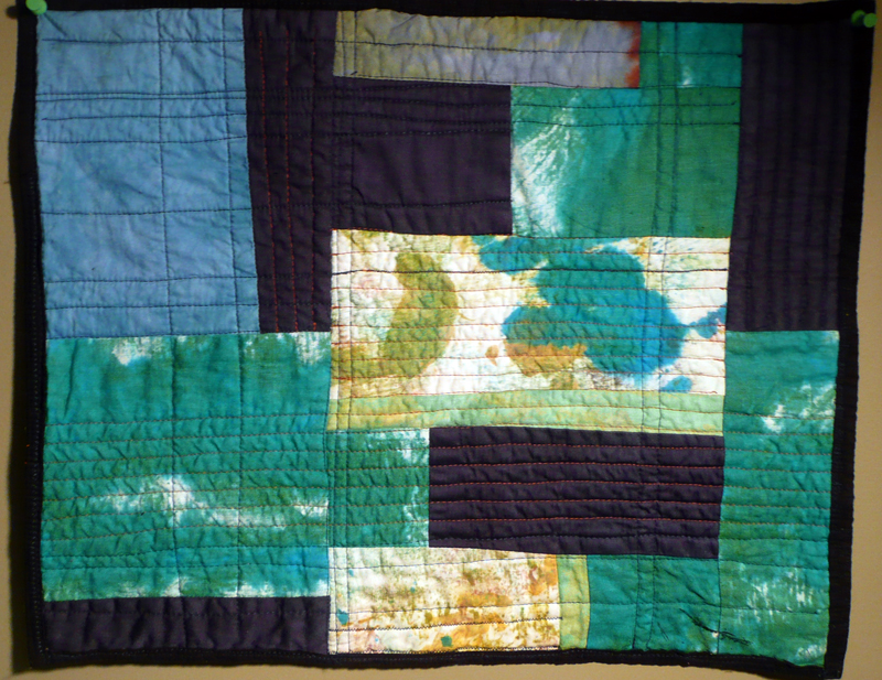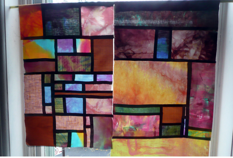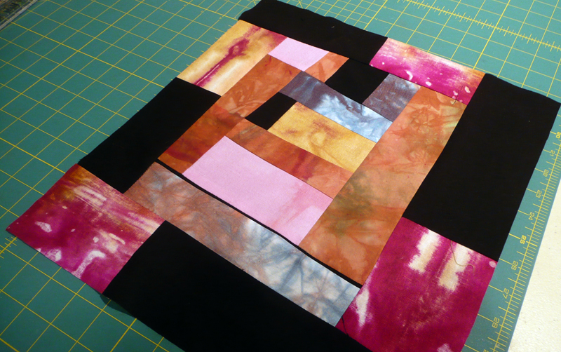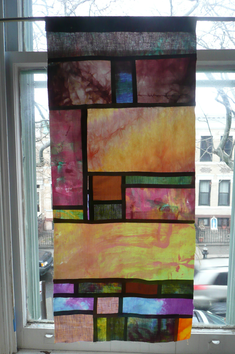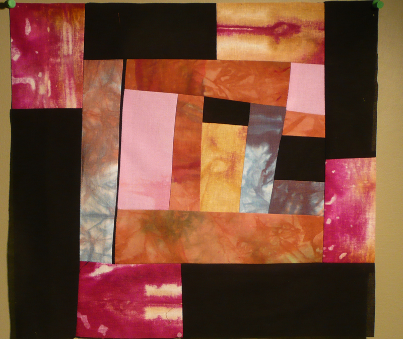 I started a new piece tonight. It went together really fast. I didn’t measure anything, I just cut and sewed. I think I like the way it came out. I used stuff from my stash that I’ve been dyeing over the life of this blog. I really went into the zone tonight but I am feeling a little anxious about it-the work I mean.Or actually taking the time to do the work. What if I spend a lot of time and it just doesn’t go anywhere. Part of me doesn’t think that’s possible and a lot of me does. When I go into the zone, I don’t think about it or care.