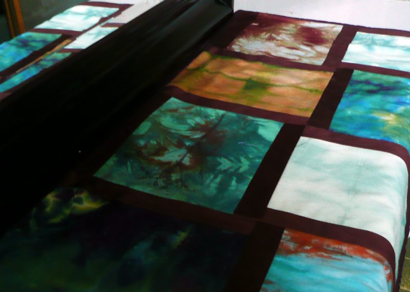 And I think I’m going to give this piece another try. I was using it in the bathroom to cover a dresser. It has no batting though it is backed with linen. I’m going to make two pieces out of it, add batting and quilt them. Let’s see how it goes.