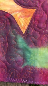 Again, lovely quilt. 🙂 The purples are striking with the peachy orange.