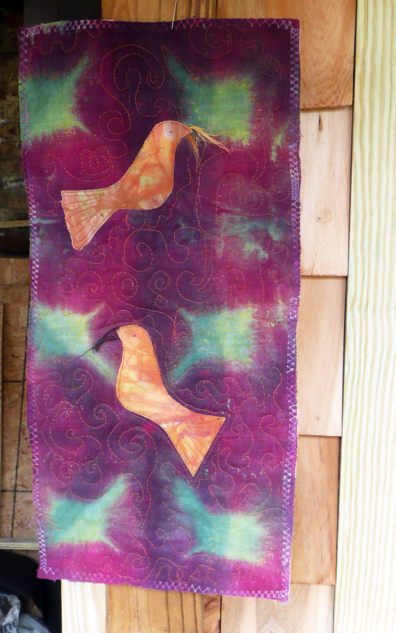 Did you see that one? Portlandia is my favorite show. And that might be one of my favorite episodes. I had so much fun today!  I holed up in my studio (wow I have a studio now), and I made this. Total bliss. Annie if you are still following, just imagine it upside down! LOL I still have a long way to go with the machine quilting thing. How do you get to Carnegie hall?