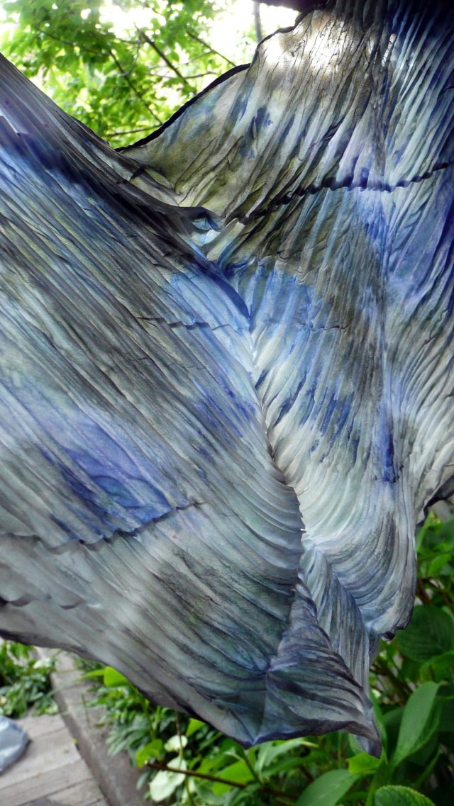 Here are a couple of photos of the shibori wrap from the video. It has stayed nicely pleated even through the heat set in the dryer. I am in love with it  and I want to make so many more.The close-up