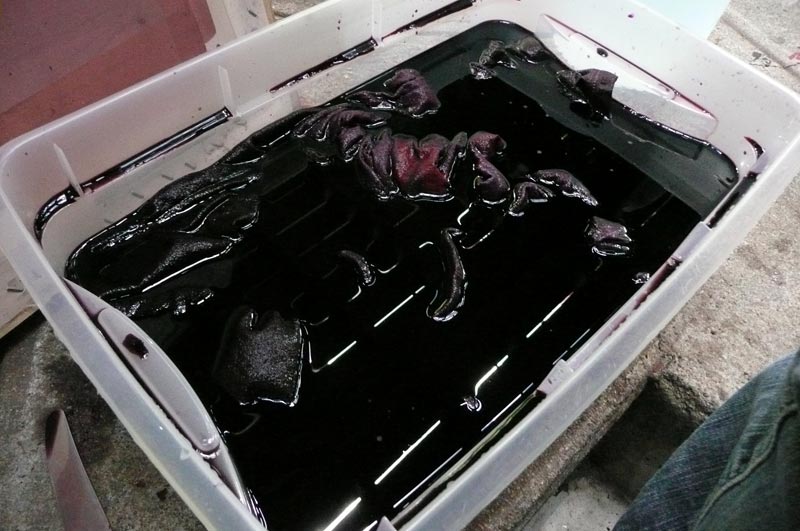I finished the birds on the placemats from the other night. Yay! I love the way they came out. I printed the napkins to match. Brooklyn Doves. Put up a few dyepots with the leftover white v-necks.Β