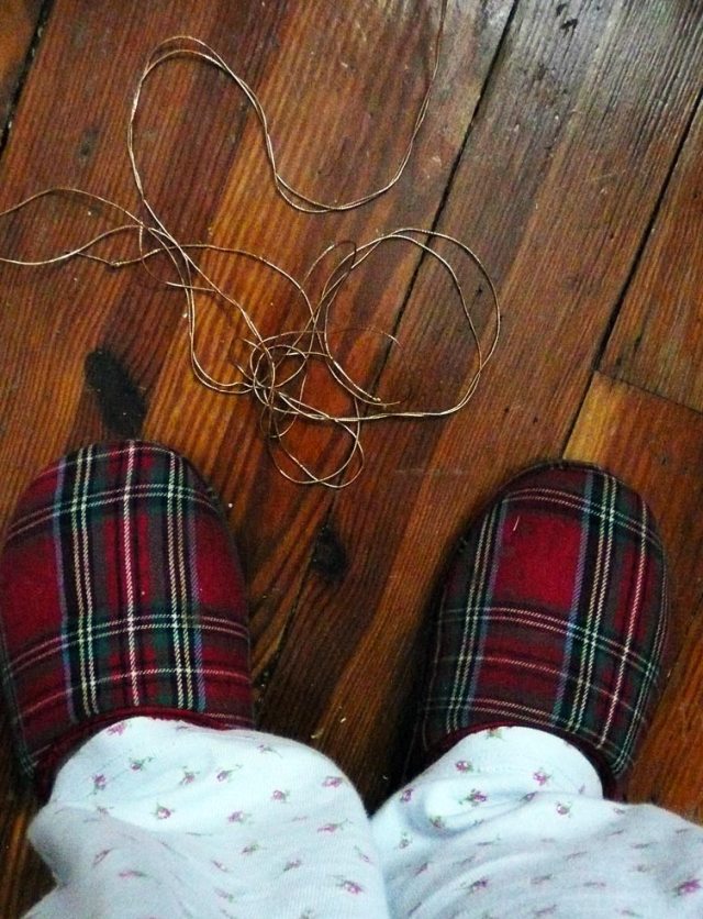 Anyway I’m trying to organize and put everything away so I can get back to work and I see this gold twine on the floor and start wondering how I can use it in my next project.