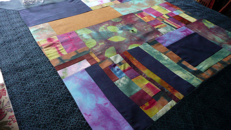 I cut up the big quilt into smaller pieces. Here is the first of the series with the blue silk used for the border.