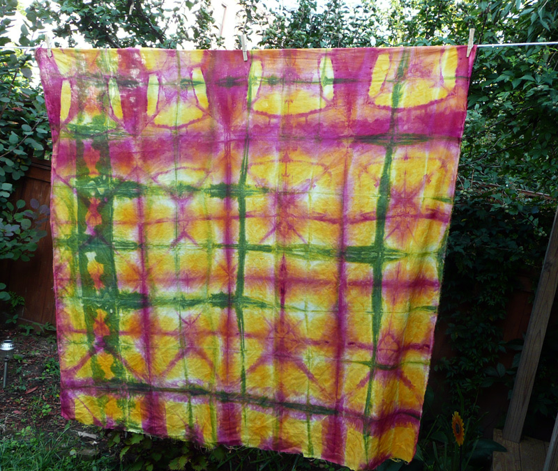 Here is the fabric from yesterday. It has some interesting markings. I’ll iron it and figure out what to do next. Right now I’m thinking another dyebath.