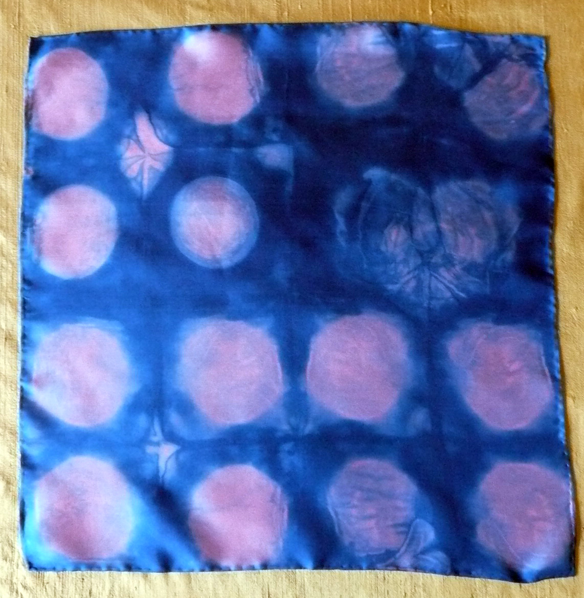 Sorry to be so late getting this post up but i wonted to offer something for the swap that was hot off the press. So today I did a bit of dyeing and here is the piece I am offering to swap. acid dyed today, 16 x 16 inch silk square hemmed four sides in lavender and blue with a lovely heart shaped mark just in time for Valentines day!