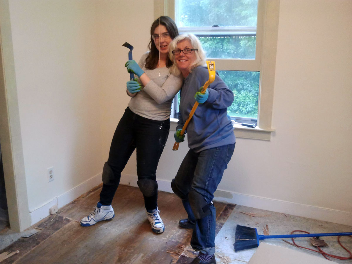 pulled up the linoleum and sub floor