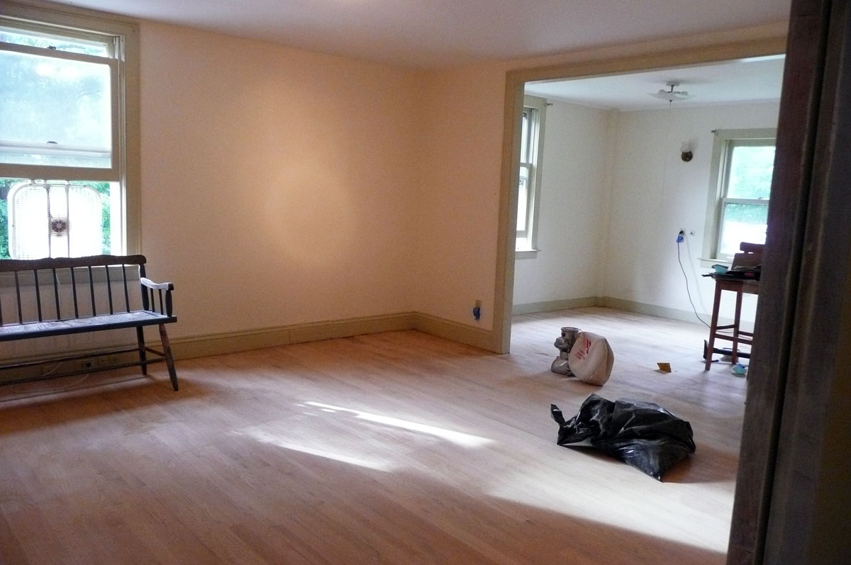 Peter is sanding the floors with this monster sander we rented in our hope to be pretty soon living room. Yay!  You are doing a fabulous job Darling! I am using a very small orbital sander and filling up the nail holes. Really this has been quite a job. Kate you were a huge help too!!