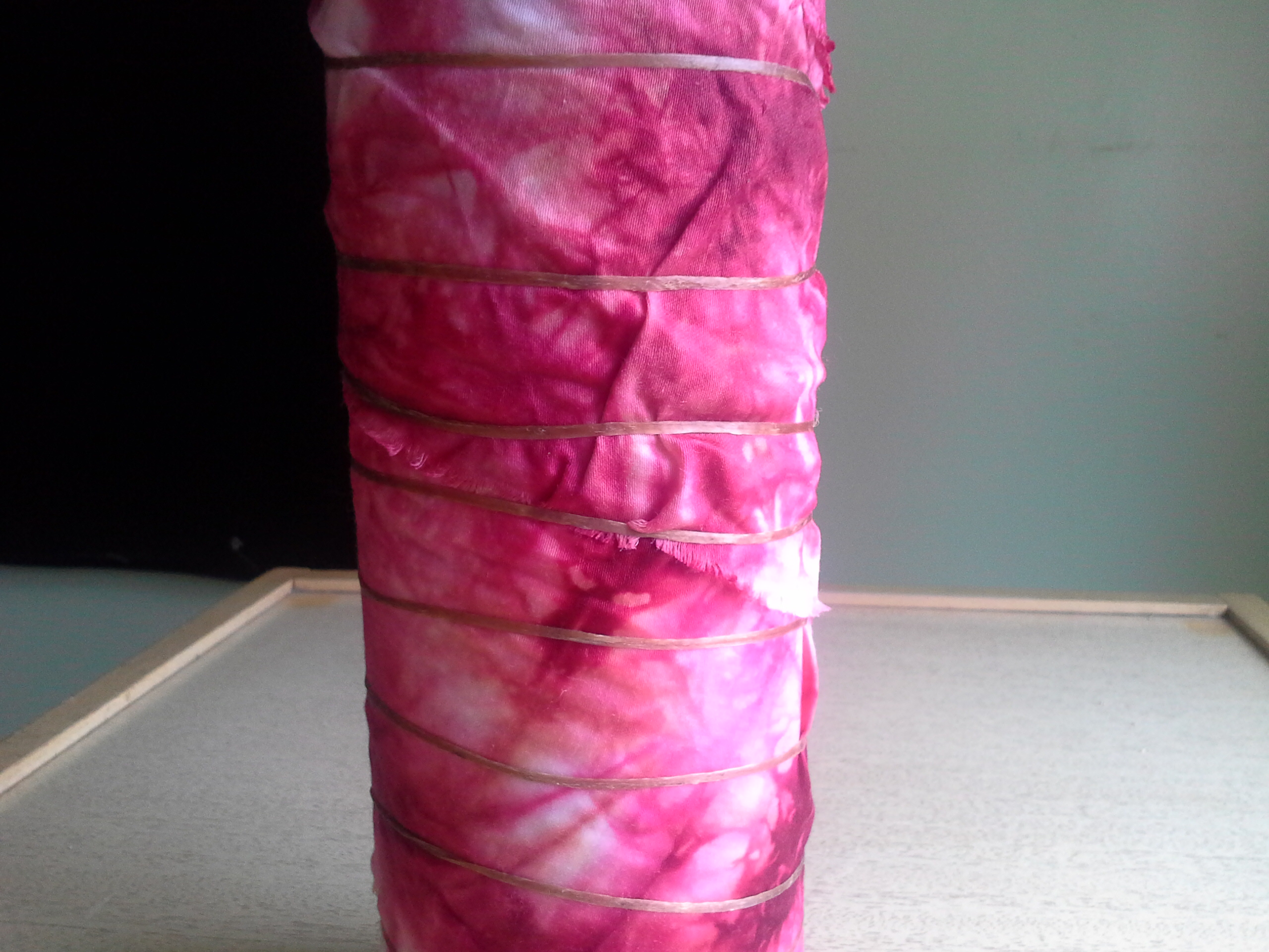 Now put it in your dyepot or bag. I like to use a bag- less water, more concentrated color.
