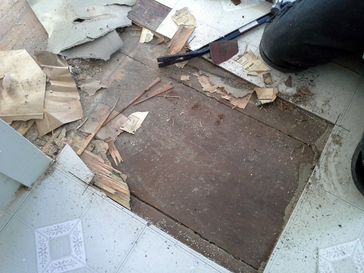 After we got all the linoleum up, 2 layers and the plywood subloor, Peter rented the sander and got to the sanding