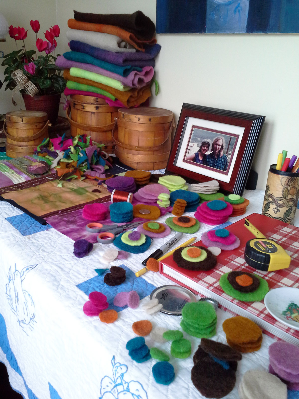 Two guesses? 1. Circle felted wool blanket or 2. Felted flowers?
