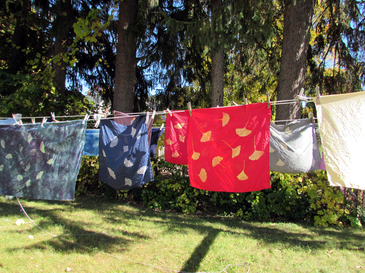 I kept printing ginkgo on some silk squares I had in the studio. I think they will make some very fine pillows.