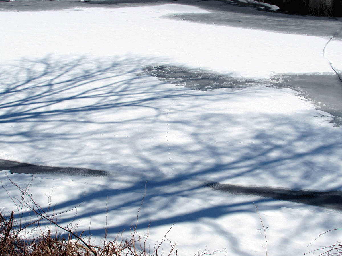 Winter is gone I think but I wanted to show you a couple of photos from last week- a little critter must have walked across the river when it was frozen and snow covered.