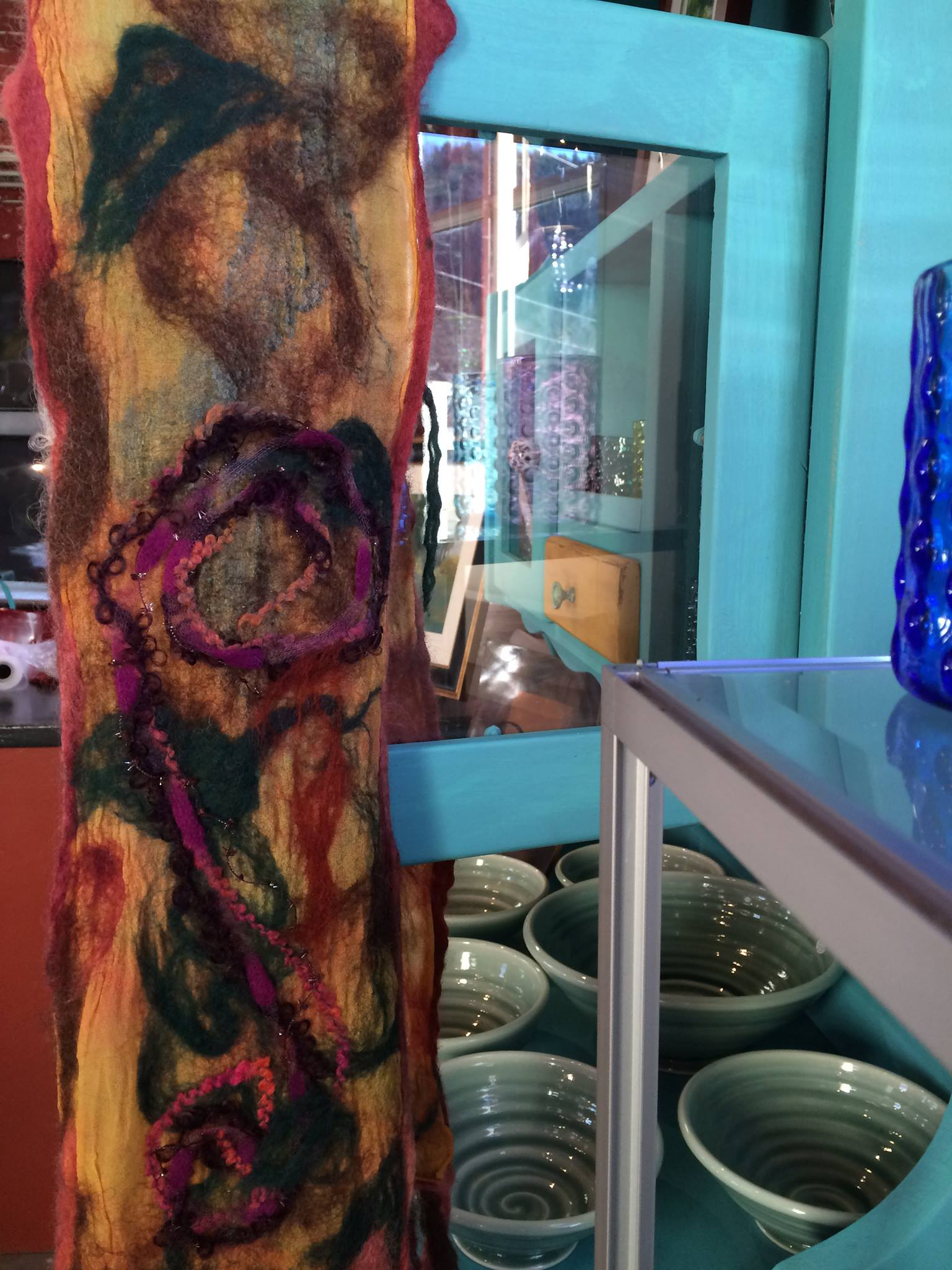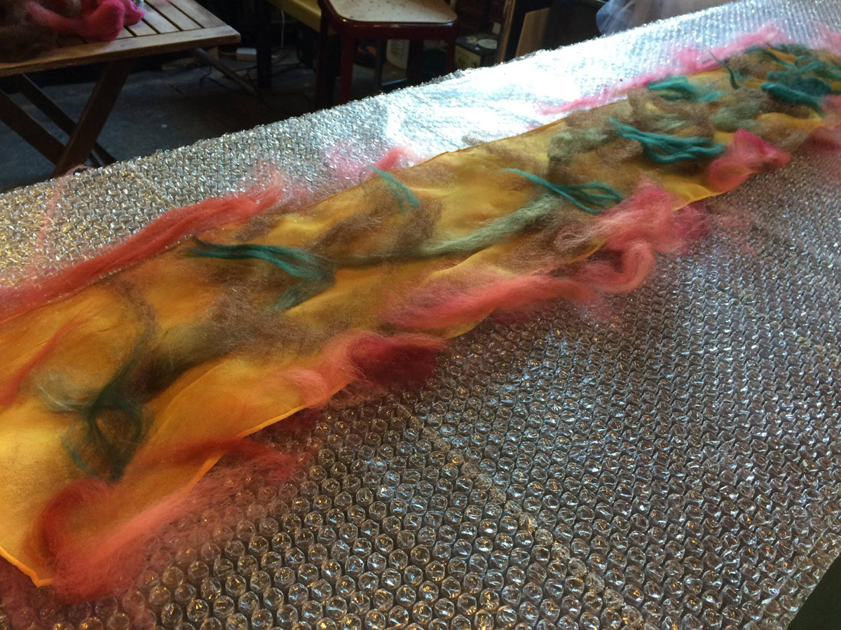 I made this nuno scarf at Brick and Mortar Studio today in Shelburne Falls, MA. I did a demonstration of the process and made some new friends!